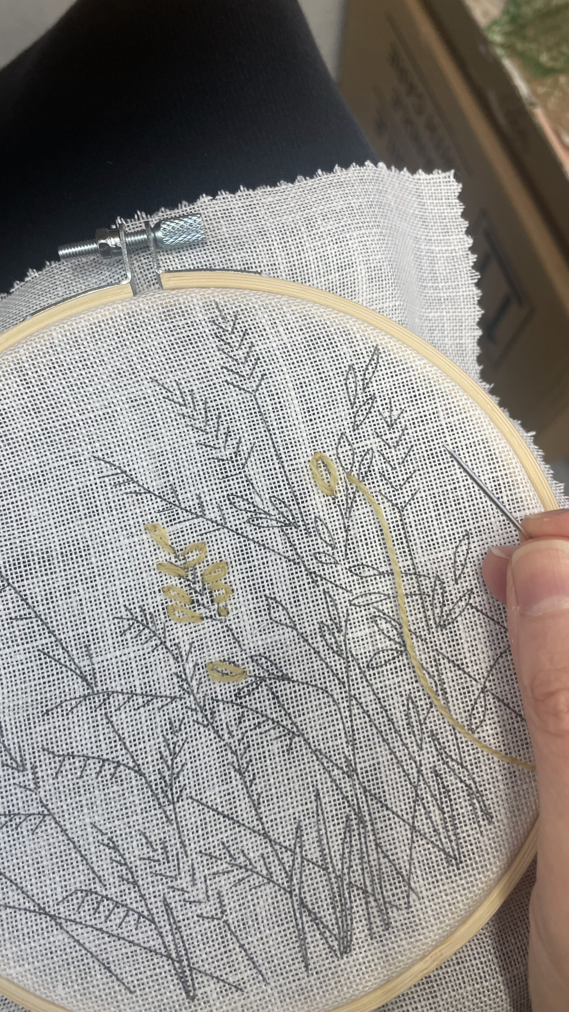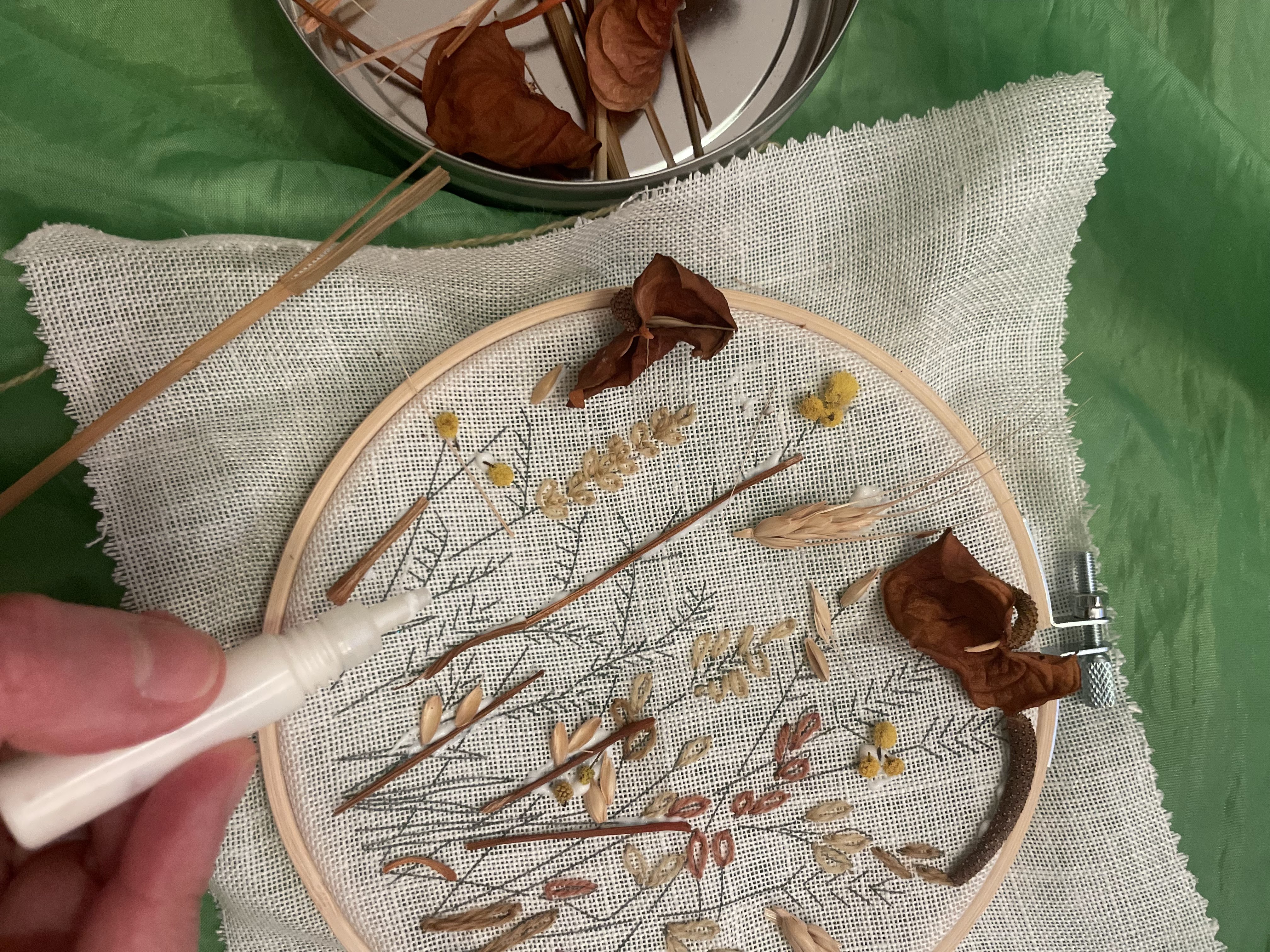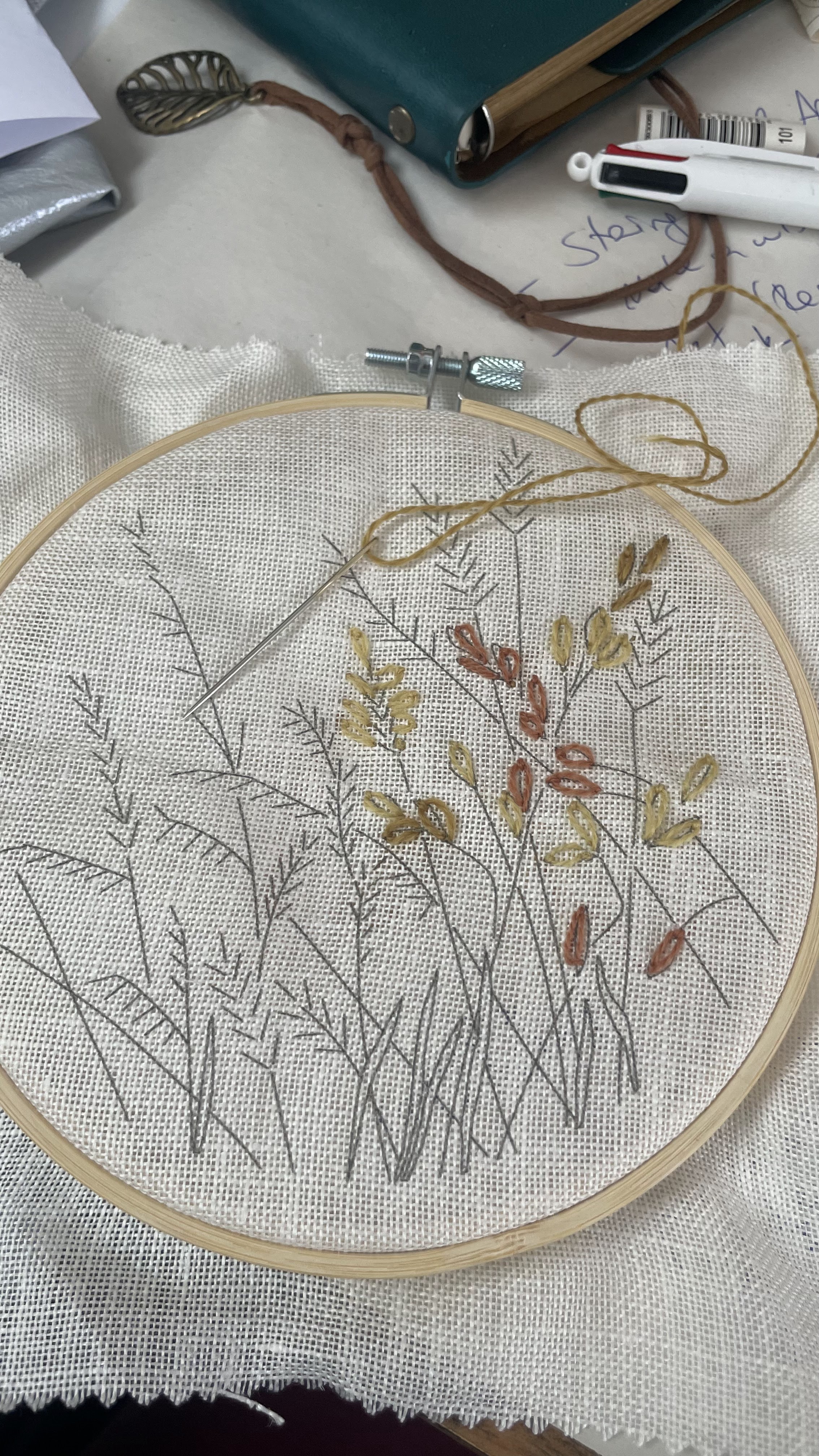 My first try on wheat and grain embroidery on canvas.