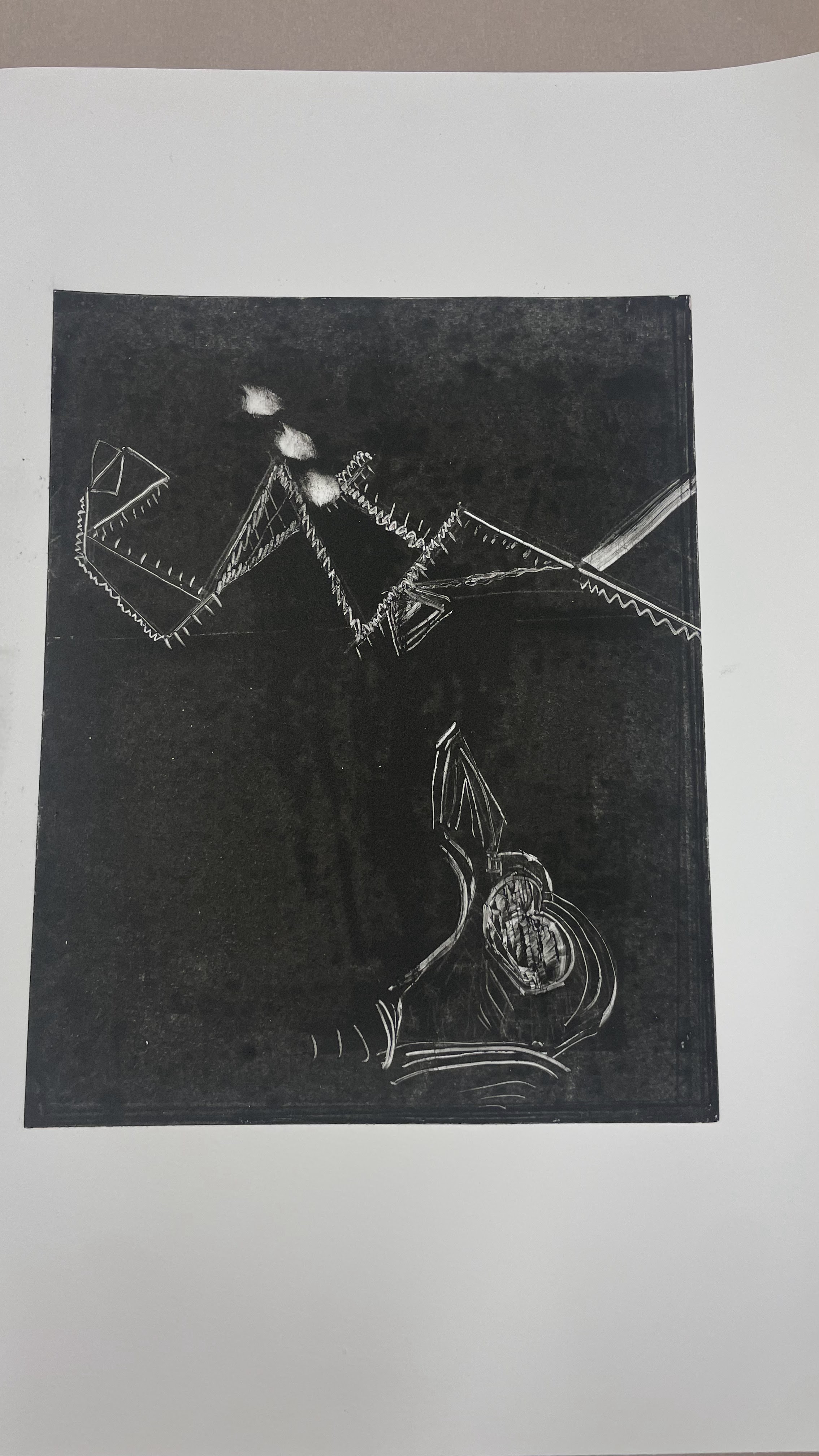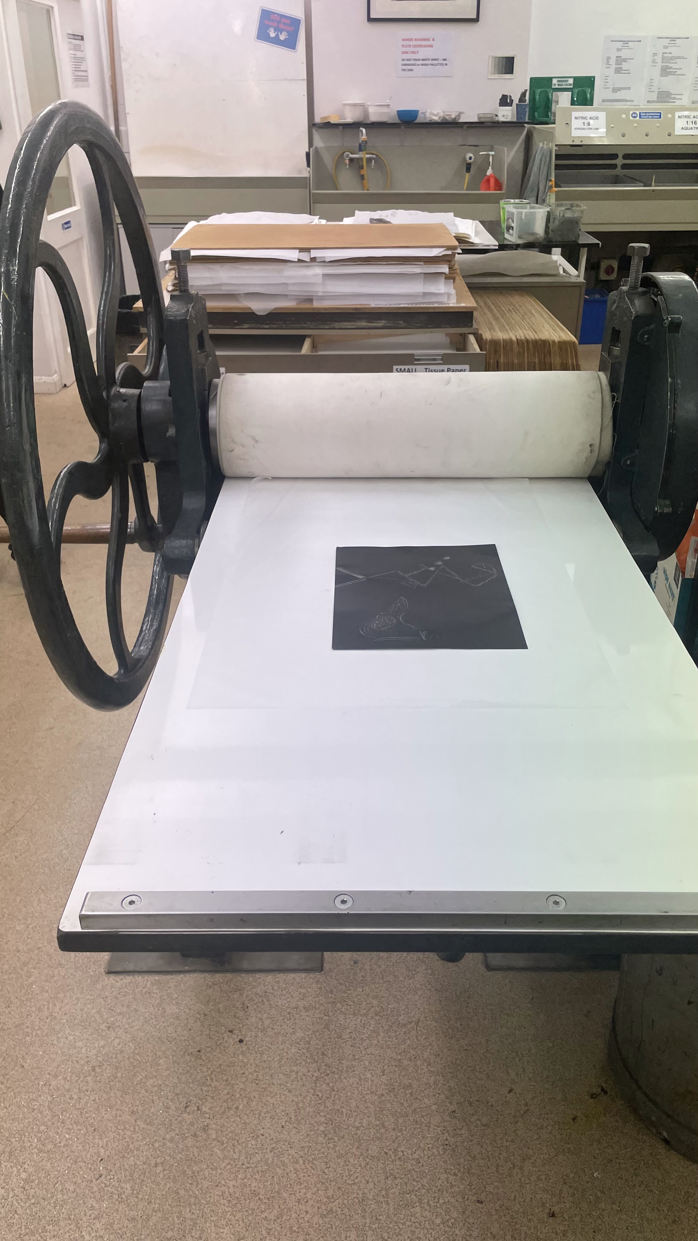 On my Monoprint course I have created my name images as B letter name with abstract form.First i draw then A3 printout etching ink with roller.I put the aliminum plate first,draw edges on registration board,i put some blank paper to take the ink off,played tracings as positive tracing with tools and negative tracing with different tools,i put the paper inside of water tray for 20 minutes and with tissue paper on press machine very delicately and carefully then wait for dryness.