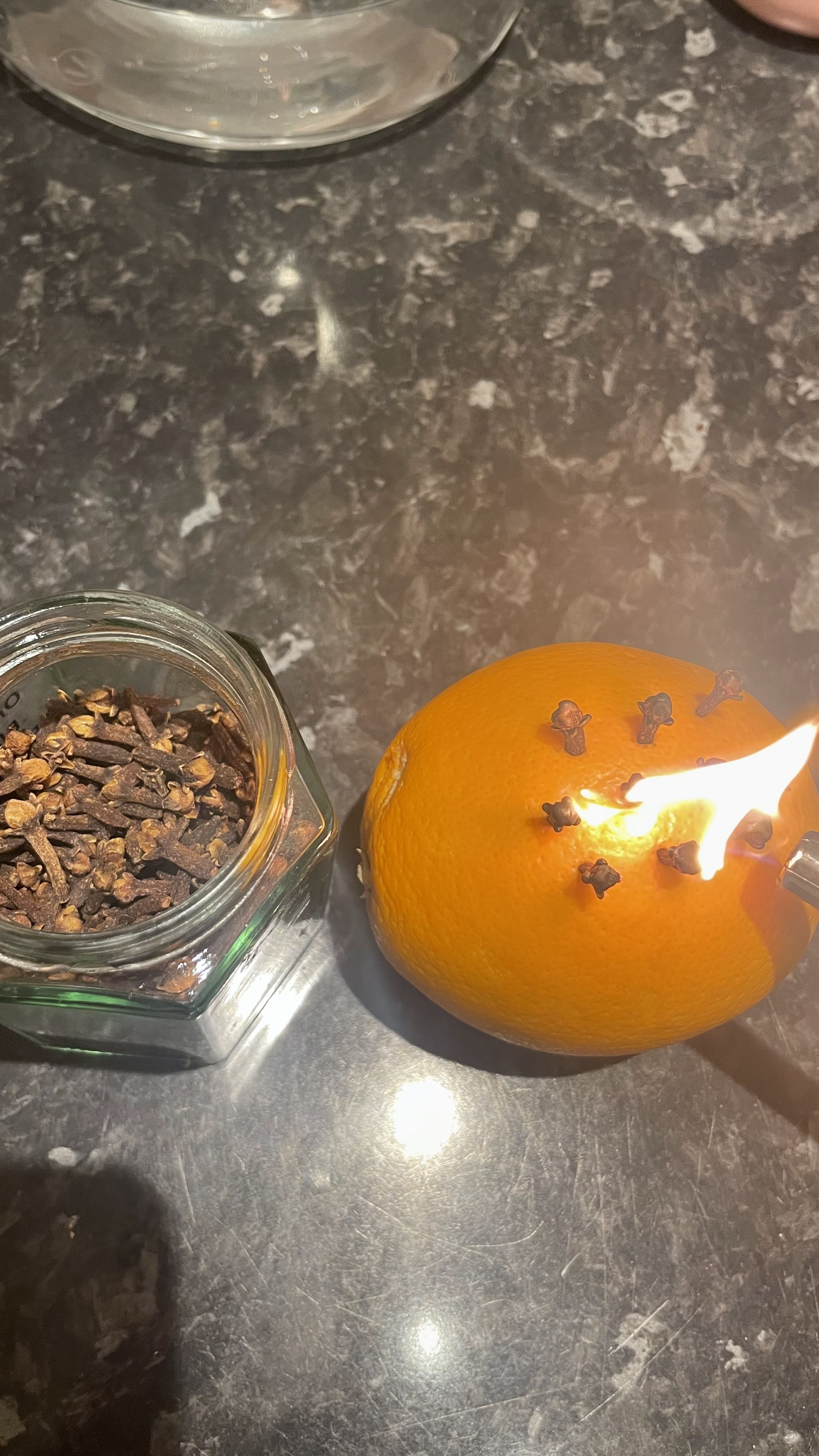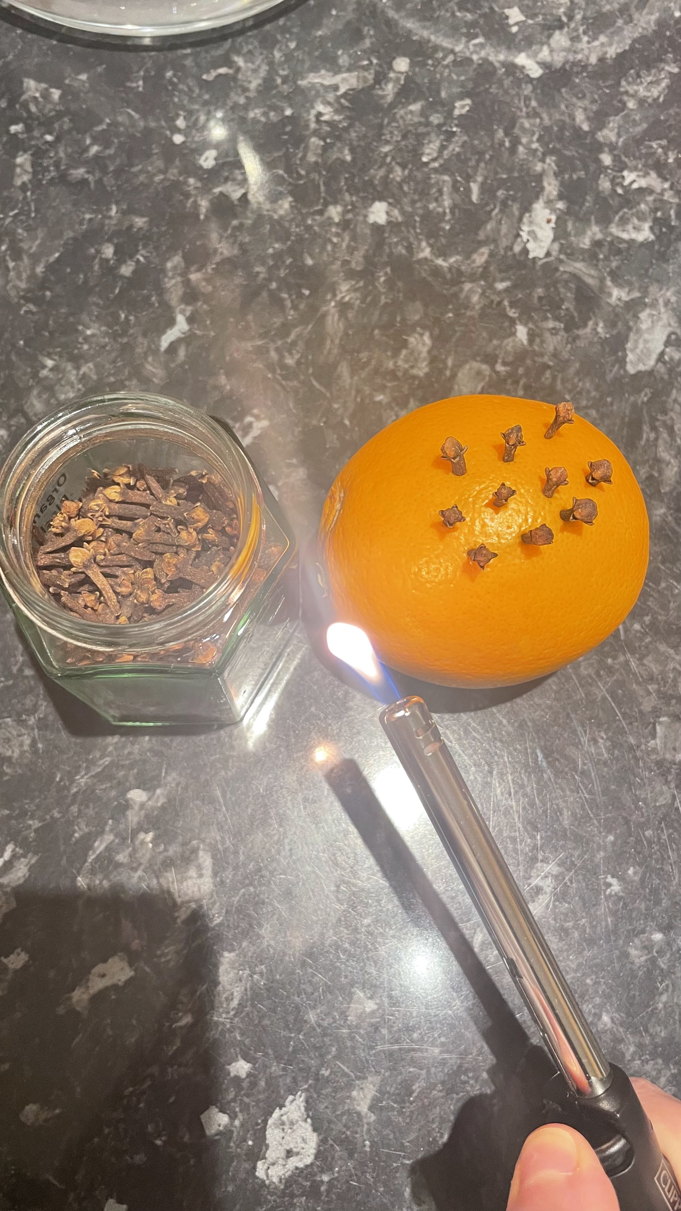 I put cloves on orange then burnt them to feel an amazing smell, when clove is burnt it brings good luck, positive energy to the mind and to the environment, people believe that when clove is burnt it chases away bad energy or vibrations.