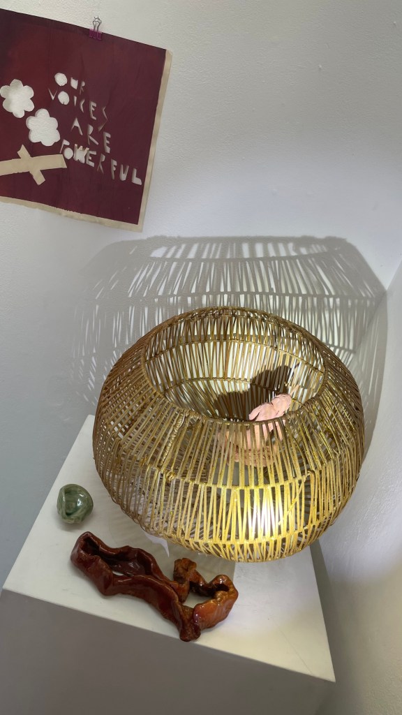 I never perform any demonstration that I haven’t sufficiently practiced, however I have created a prototype in art format focuses visitors attention on the underlying concept.The demonstration part of my exhibition includes ‘Woman In Violence’ that the woman sculpture inside of the cage | basket with a shadow on the wall as a shadow artist I inspired by Kumi Yamashito.