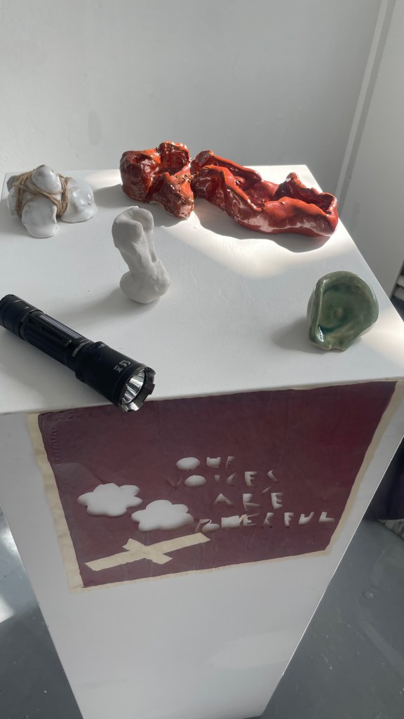 Every object is linked even in ordinary experience ,to another object as ear with which it has rational connections that need to be discovered: the ear and the printmaking ‘ Our Voices are Powerful’.