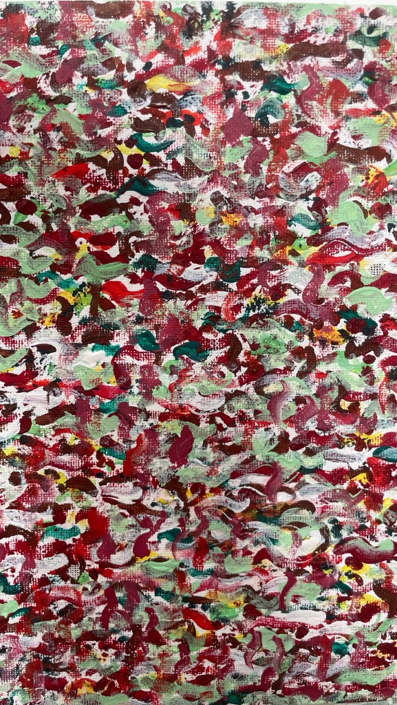 All these works reflect different approaches to abstraction likely themes of movement,nature and positive energy and I am interested in this processing are different brush strokes.