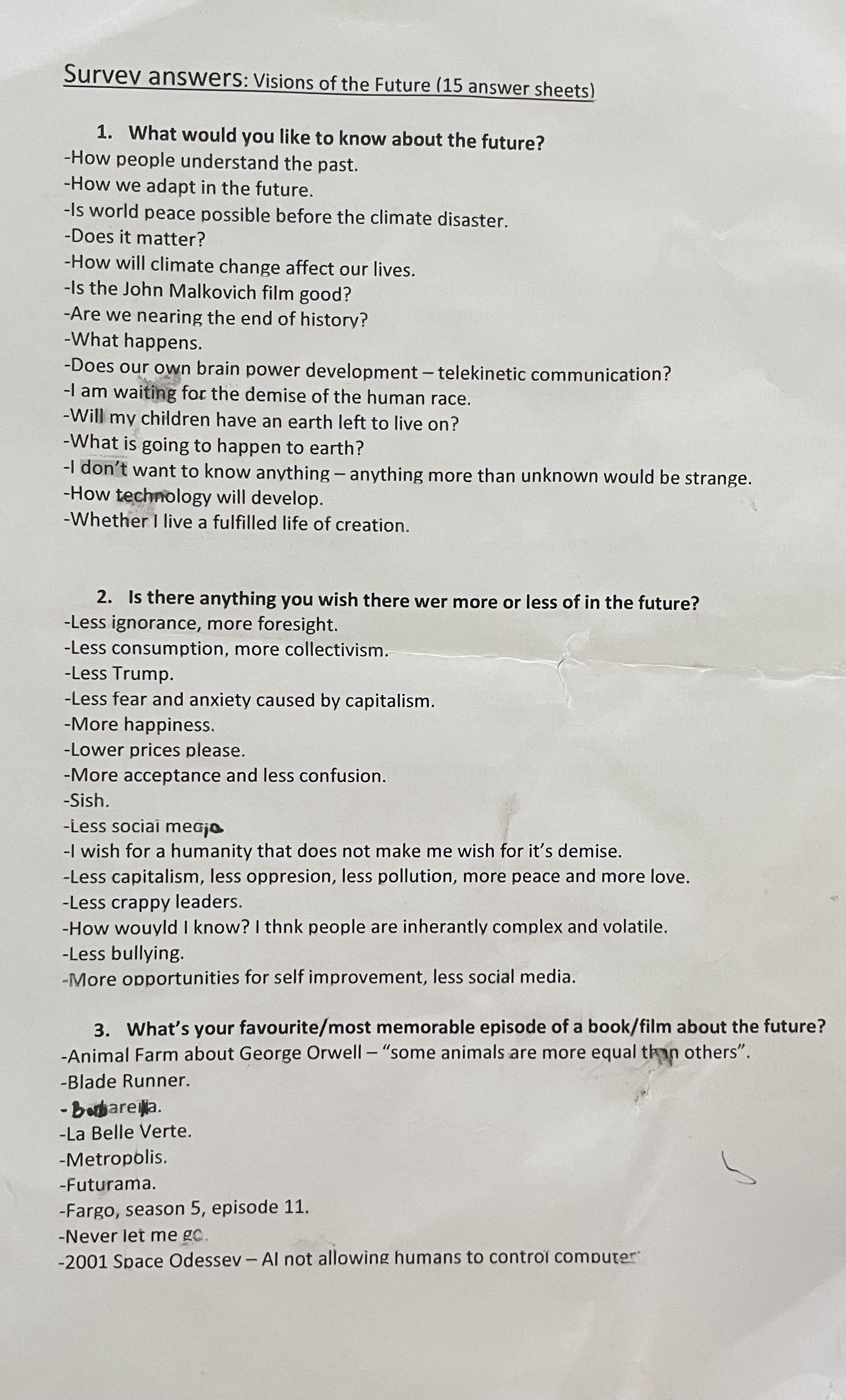 On our research, i have lots of questions about collaborative project as “Visions Of Future” as in what ways the world will be different in the future and what wishes do we have as climate change,growing population in 100 years, wars end ,how will art be in the future etc.